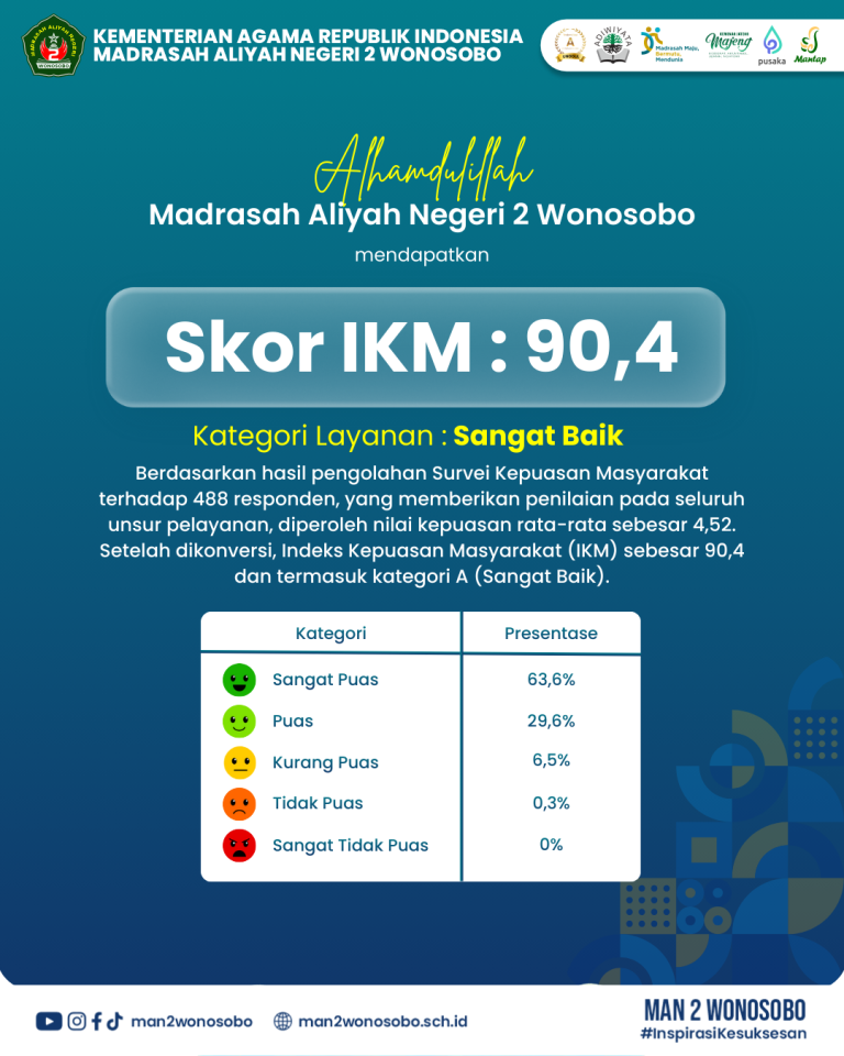 Skor Indeks Kepuasan Masyarakat (IKM) Madrasah Aliyah Negeri 2 Wonosobo Tahun 2025