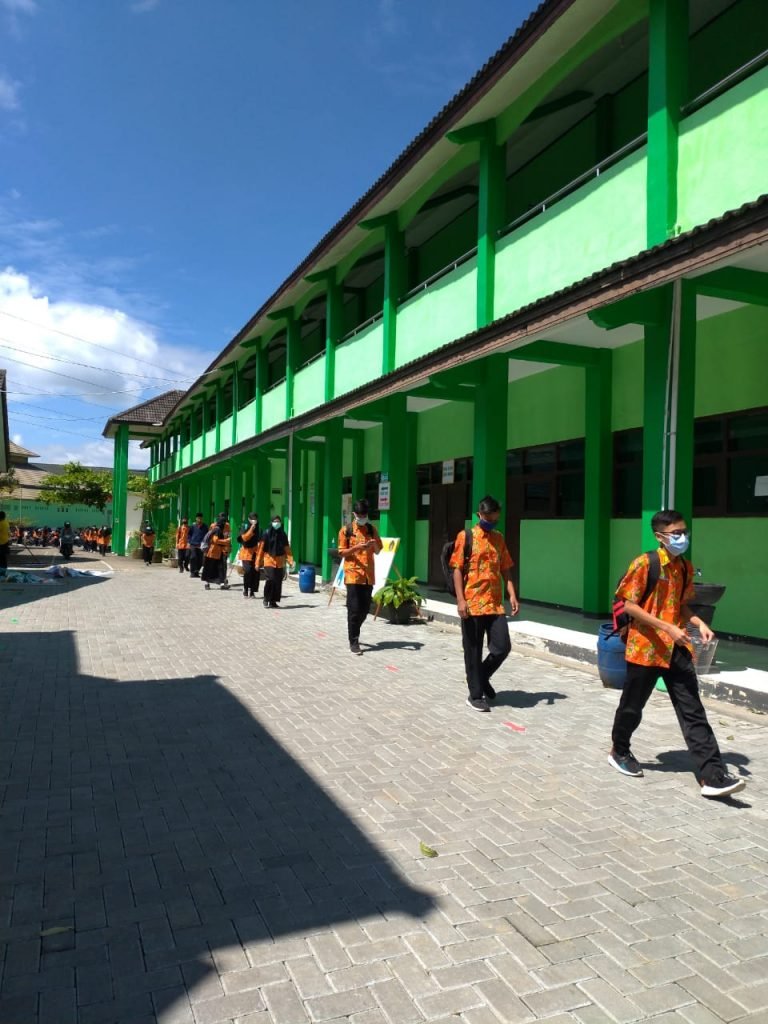 Wonosobo – Simulasi pembelajaran tatap muka di MAN 2 Wonosobo telah berlangsung 3 hari. Peserta didik yang ditunjuk untuk melakukan pembelajaran tatap muka melaksanan aturan protokol kesehatan dengan baik. Terbagi dalam 6 kelas, 108 peserta didik berangkat ke sekolah dengan jalan kaki maupun menggunakan sepeda motor. Sampai di sekolah mereka akan dicek suhu tubuh dan cuci tangan terlebih dahulu. Hal tersebut dilakukan untuk memastikan bahwa peserta didik yang berangkat ke sekolah dalam kondisi sehat. Peserta didik yang suhu tubuhnya tinggi (lebih dari 37 derajat Celcius) diperkenankan untuk pulang dan belajar di rumah.