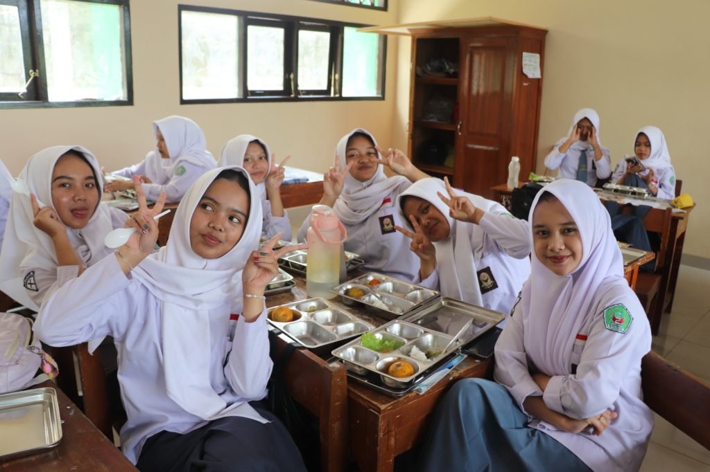 Antusiasme juga terpancar jelas dari raut wajah para siswa. Salah satu perwakilan siswa, Dewi Qomariyah, menyatakan bahwa kehadiran makanan gratis ini sangat membantu, terutama bagi mereka yang harus menempuh perjalanan jauh ke sekolah. “Makan siang yang bergizi dan sudah disiapkan membantu kami tidak lagi memikirkan bekal atau jajan di luar. Kami bisa langsung bersemangat untuk mengikuti pelajaran berikutnya,” ujarnya.