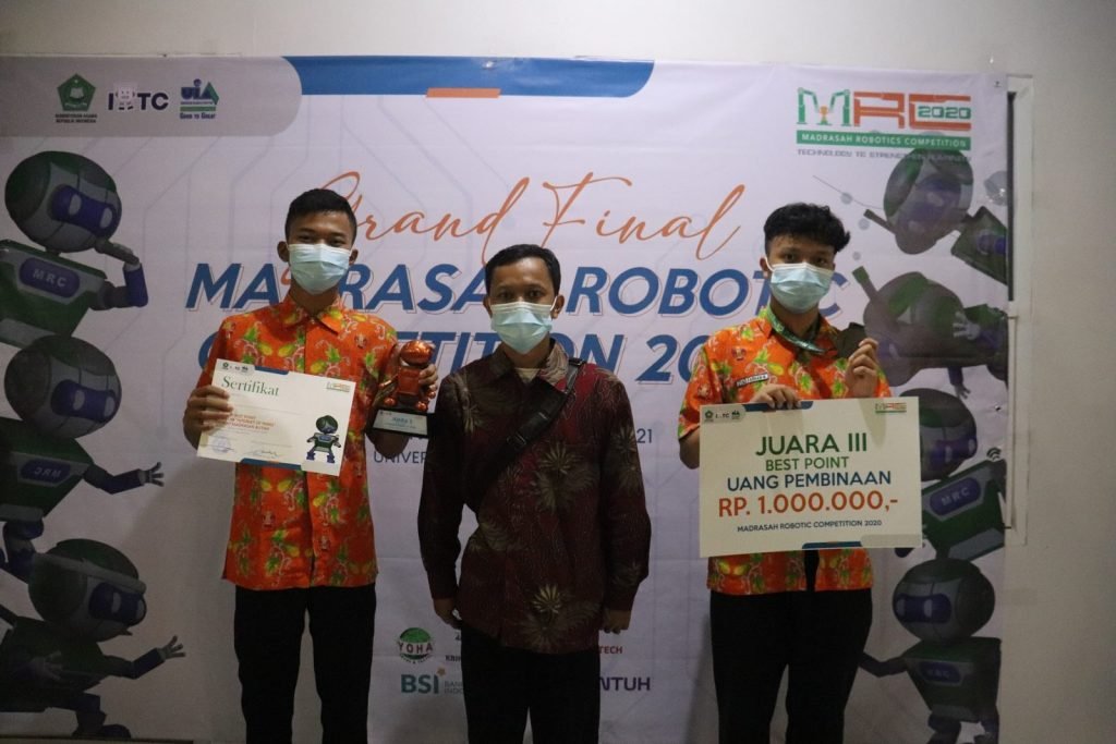 Wonosobo – Tim Robotik MAN 2 Wonosobo meraih prestasi membanggakan dengan menjadi juara 3 Best Poin pada Madrasah Robotic Competition (MRC) tingkat Nasional tahun 2020 kategori Internet Of Things (IOT). Tim tersebut terdiri dari dua siswa, Damar Djati Nur Fauzi kelas XI IPA 1 dan Zyad Farhan Nayottama XI IPA 6 dan Bartono, S.Pd., sebagai guru pembimbing. Pada babak Grand Final di Universitas Islam Asyafi’iyah (8-11 Februari 2021) Tim Robotik MAN 2 ini menjadi yang terbaik bersama MAN 1 Jembrana (juara 1) dan MAN 1 Ponorogo (juara 2).
